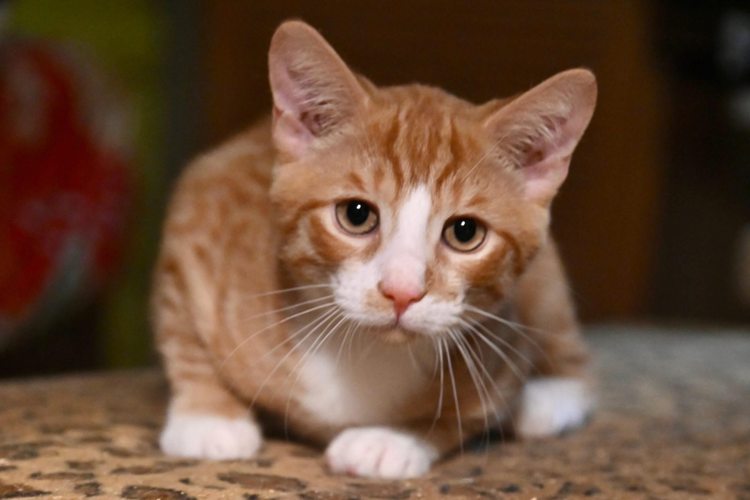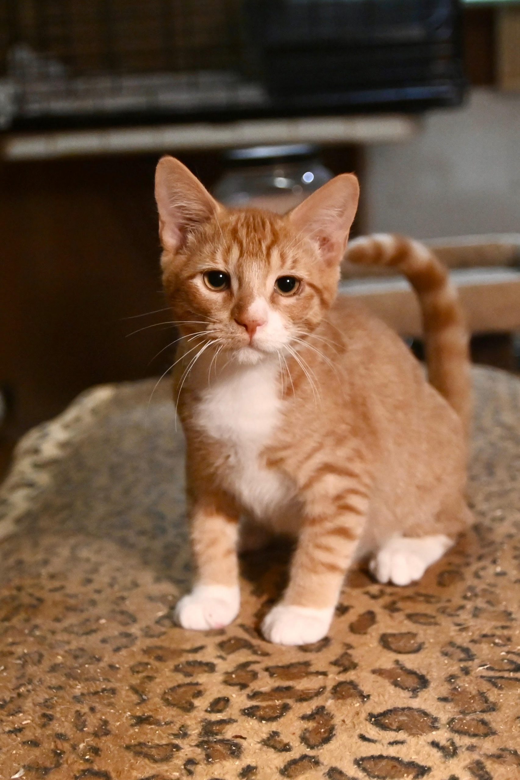Toy mice and little toy balls are the highlight of this little guys life. He looks forward to playtime with his siblings and of course, his mealtimes. He loves cold, cold water and ear massages. He is comical and energetic, so be ready for some laughs. He gets along well with other cats and children, so he’d make a beautiful addition to any family looking to share their love with a little ball of orange fluff.