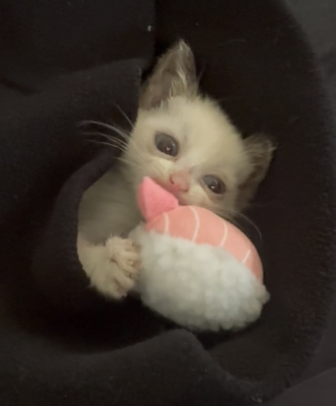 Why You’ll Love Tootsie II: She’s has the softest spirit – timid with heights but full of low-to-the-ground love. She’s affectionate, cautiously curious, and will always let you know when playtime gets too rowdy. She loves exploring low places, quiet affection, and soft surroundings. A fun fact about Tootsie is that she’s your floor-level explorer with a heart full of hush!